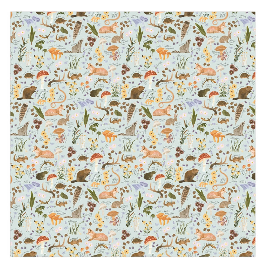Envelop your baby in the gentle beauty of nature with the Flora & Fauna Swaddle. It features a variety of beautifully hand-painted animals, flowers and plants such as mushrooms, blackberries, coneflowers, chamomile, a turtle, fox, raccoon, beaver, frog, snake, chipmunk, lizard and more. This swaddle is crafted for softness and breathability, providing a cozy and stylish layer for your little one. Give the gift of comfort and style to any new mom for the baby shower, welcoming a new arrival, or Mother's Day.